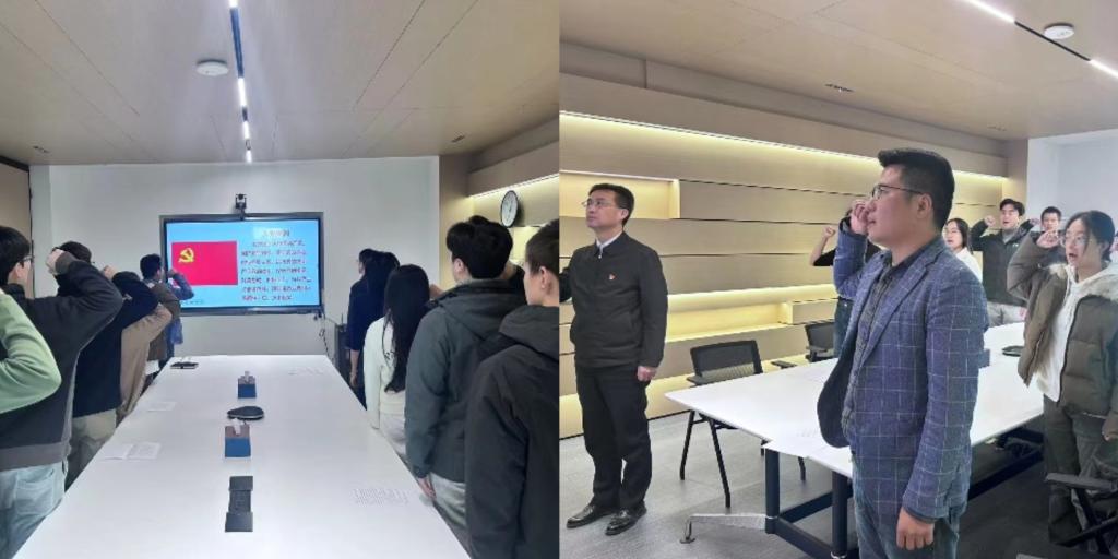 在庄重肃穆的氛围中,高东波带领8名新党员高举右拳,郑重宣誓。铿锵有力的誓言回荡在会场,表达了新党员坚定不移听党话、跟党走,为共产主义事业奋斗终身的坚定信念和坚强决心。