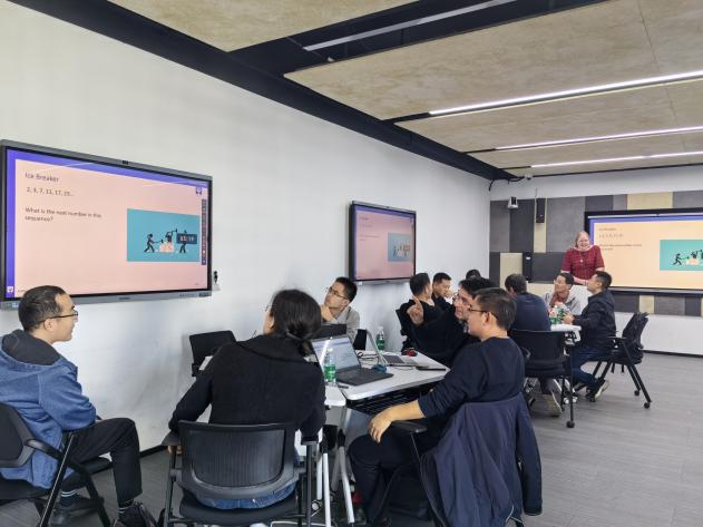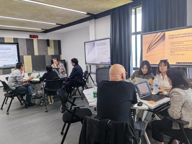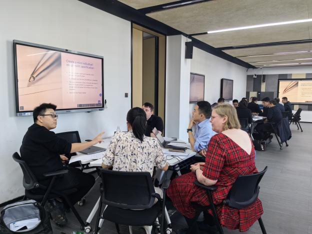 在635数字化互动教室开展课程考核(Assessment)专题培训,共36名中外方教师参加。培训由外方执行副院长Karen Petrie主持。
