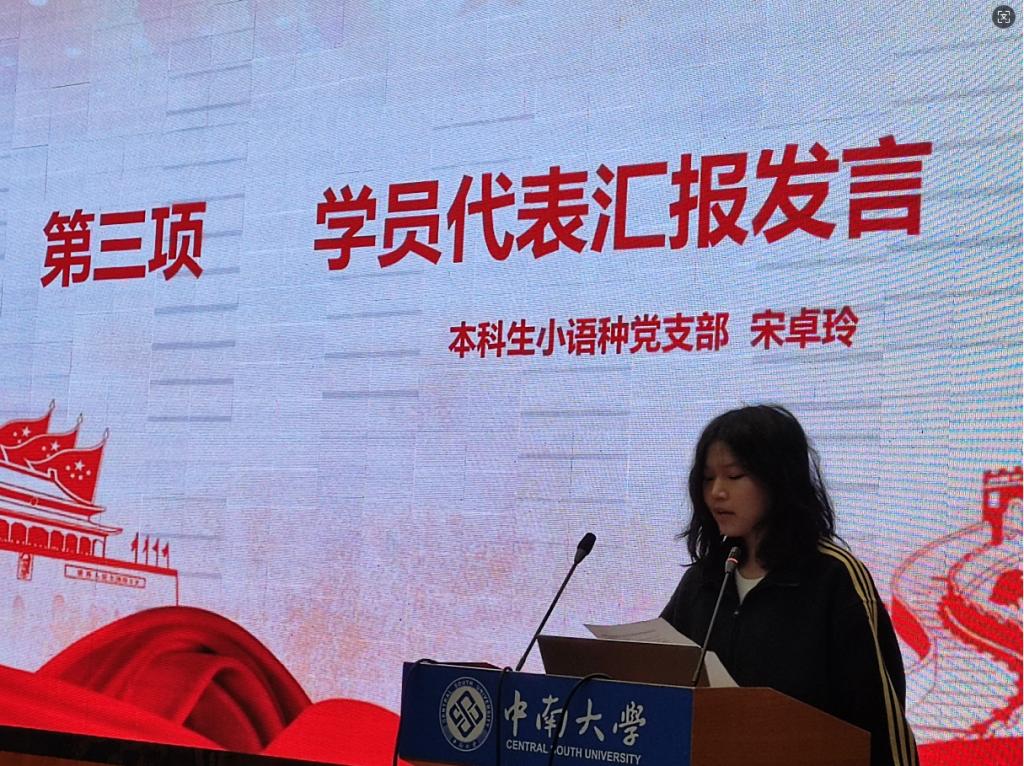 西班牙语2201班的宋卓玲也作为发展对象代表号召全体学员在以后的学习上要进一步提高理论修养,增强能力本领,在学习上勤奋刻苦、在学生工作上更加务实。在大学广阔的平台上,大家要以实际行动起先锋模范作用,早日成为德智体美劳全面发展的社会主义建设者和接班人。