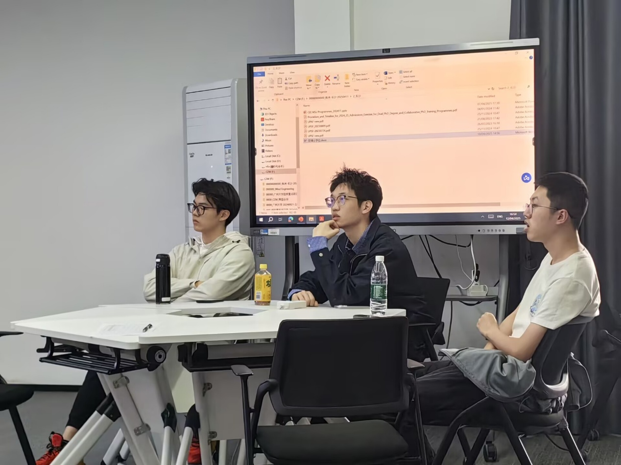 陈老师对土木工程理学硕士(MSc in Civil Engineering)和环境管理与工程理学硕士(MSc in Environmental Management and Engineering)进行了细致讲解,从课程设置、学分要求、毕业条件、入学标准、学费构成以及奖学金申请等多个维度展开说明。在互动问答环节,同学们踊跃提问,就语言成绩要求、科研实践经历等具体问题与陈教授进行了深入交流。