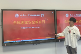 常嘉硕同学从全民国家安全日的由来开讲,带领同学一起学习了《中华人民共和国国家安全法》,介绍了作为一名大学生应当如何在生活中维护国家安全,其中包括网络求职留心眼、“附近的人”防陷阱、论坛交友明是非、约稿邮件要警惕、旅游网站擦亮眼等方面。