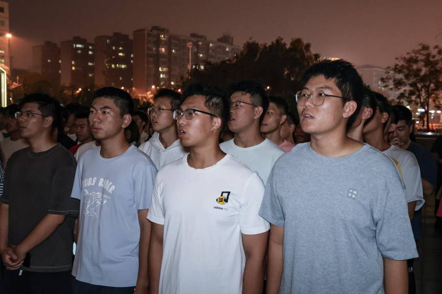 晚上八点,全连第一次红歌集体排练于体育馆前坪展开。夜色之下,同学们斗志昂扬,目光如炬,用高亢激昂的红歌点燃了秋日的夜晚。此刻,一颗颗年轻的心同频跳动;此刻,一个个炽热的灵魂交织共鸣。这首《迎风飘扬的旗》,是学子们印在青春的回忆,是学子们献给祖国的赞曲。
