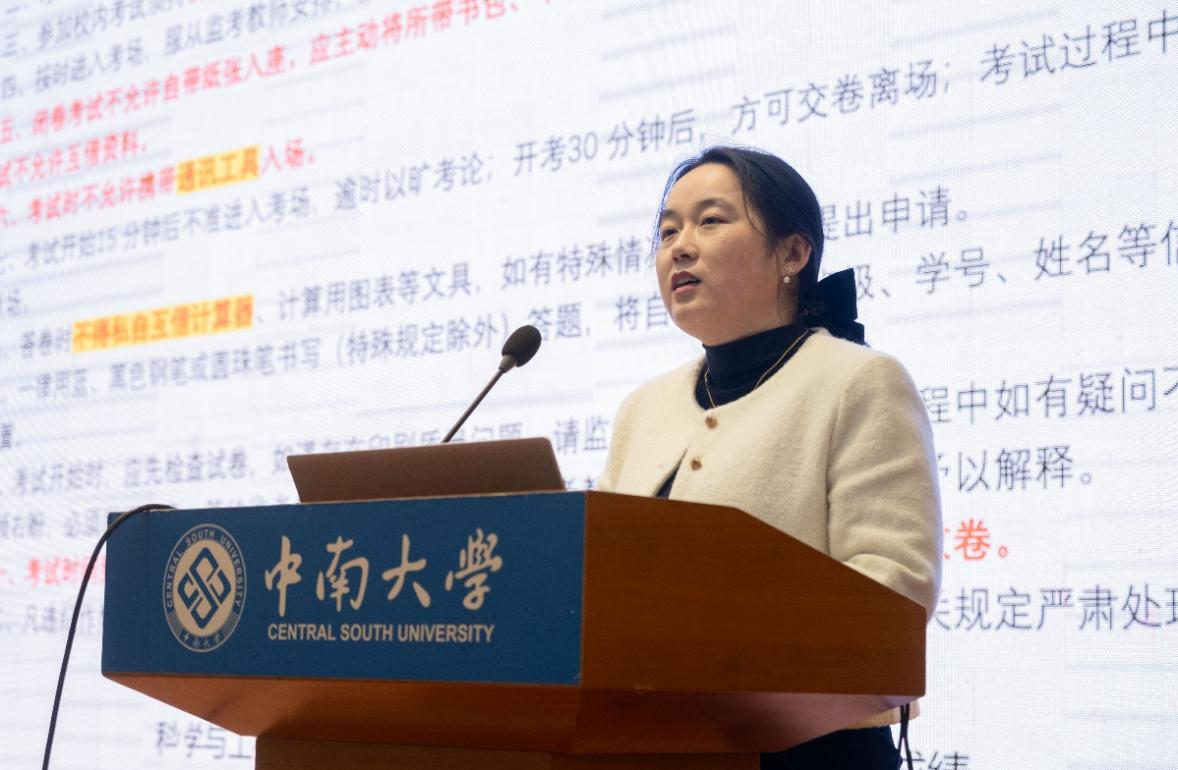 首先,张姗姗进行了期末动员。她为同学们详细分析了中南大学和邓迪大学的考试规则,列举了几例学术不端的行为。紧接着,她向同学们介绍了成绩处理流程、中英成绩转换规则以及荣誉学位获取规则。希望同学们能在考试中遵守考场纪律,诚信应考。