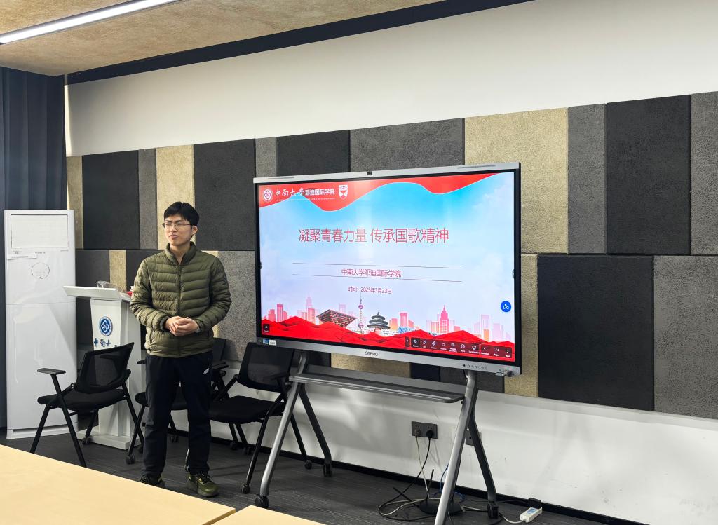 首先,曹阳向大家介绍了国歌《义勇军进行曲》的创作背景与时代意义,结合影像资料与历史文献,系统梳理国歌从抗战烽火中诞生到成为国家象征的光辉历程。在场师生通过观看珍贵档案复刻件照片、聆听创作故事,深刻感悟国歌承载的民族精神与爱国情怀。