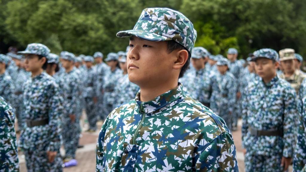 训练场上,士气高昂、动作铿锵。匕首操和分列式的训练正如火如荼地进行着。匕首操方阵中,同学们手持短刃,踢腿挥拳,动作干净利落、气势如虹;分列式队伍里,同学们身姿挺拔,摆臂一致,步伐整齐划一、节奏分明,彰显出十三连勇士们意志如钢、纪律严明的精神风貌。