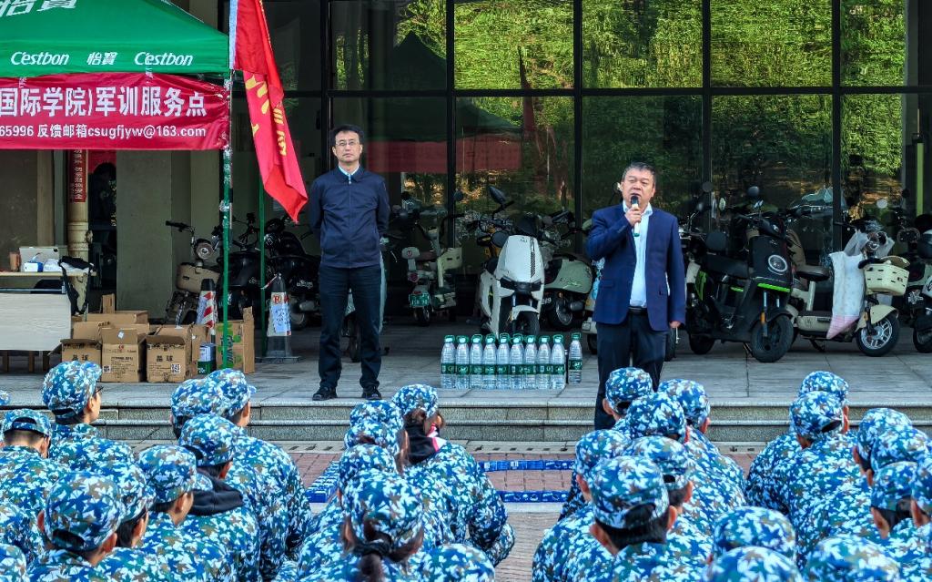 随后高东波表示了对大一新生军训的高度重视,赞扬了同学们在军训中与寒风烈日对抗的顽强精神。接着,他进一步强调了军训的深层意义,指出了军训不仅是对身体素质的锤炼,更是培养同学们团结友爱、共同进步的重要契机,这份在军训中凝聚的团队力量,将成为大家未来学习生活中宝贵的财富。最后,他对全体新生寄予厚望,希望大家把军训中的优良作风延续下去,以更饱满的状态开启大学生活。