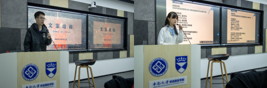 新媒体中心主办,由新闻部部长李来同学、副部长何姝妮同学担任主讲人,培训主要包括活动推文和新闻稿撰写两部分内容。