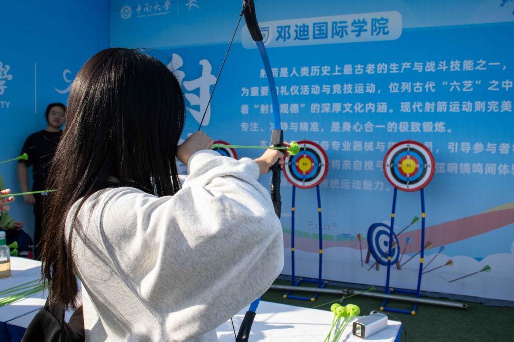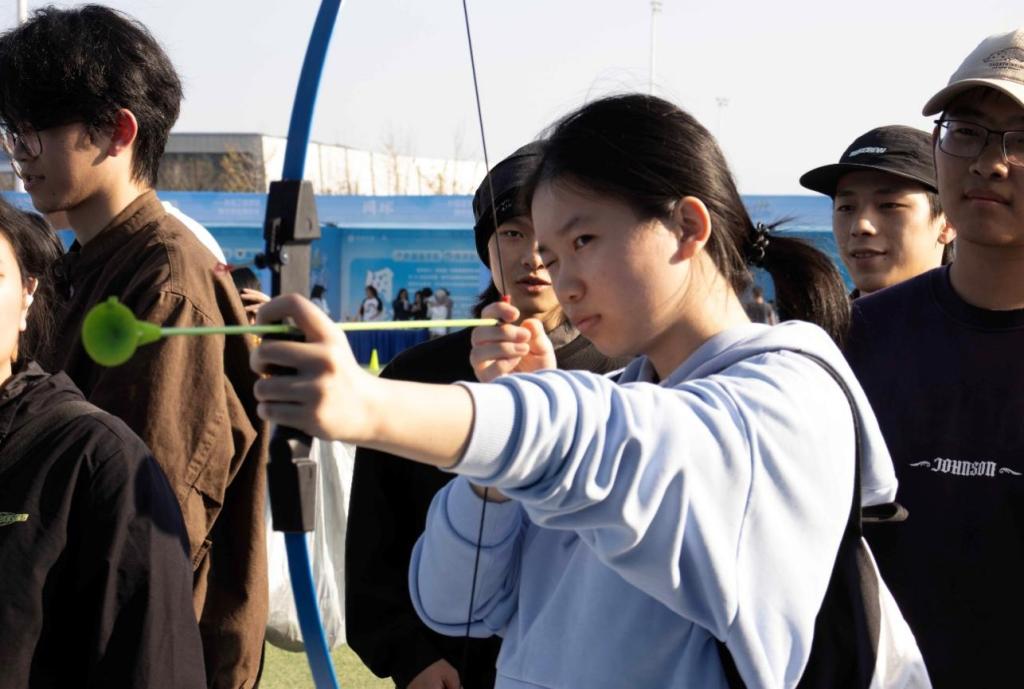 承办的“射箭”展区成为全场焦点,以其独特魅力吸引了众多师生驻足体验。