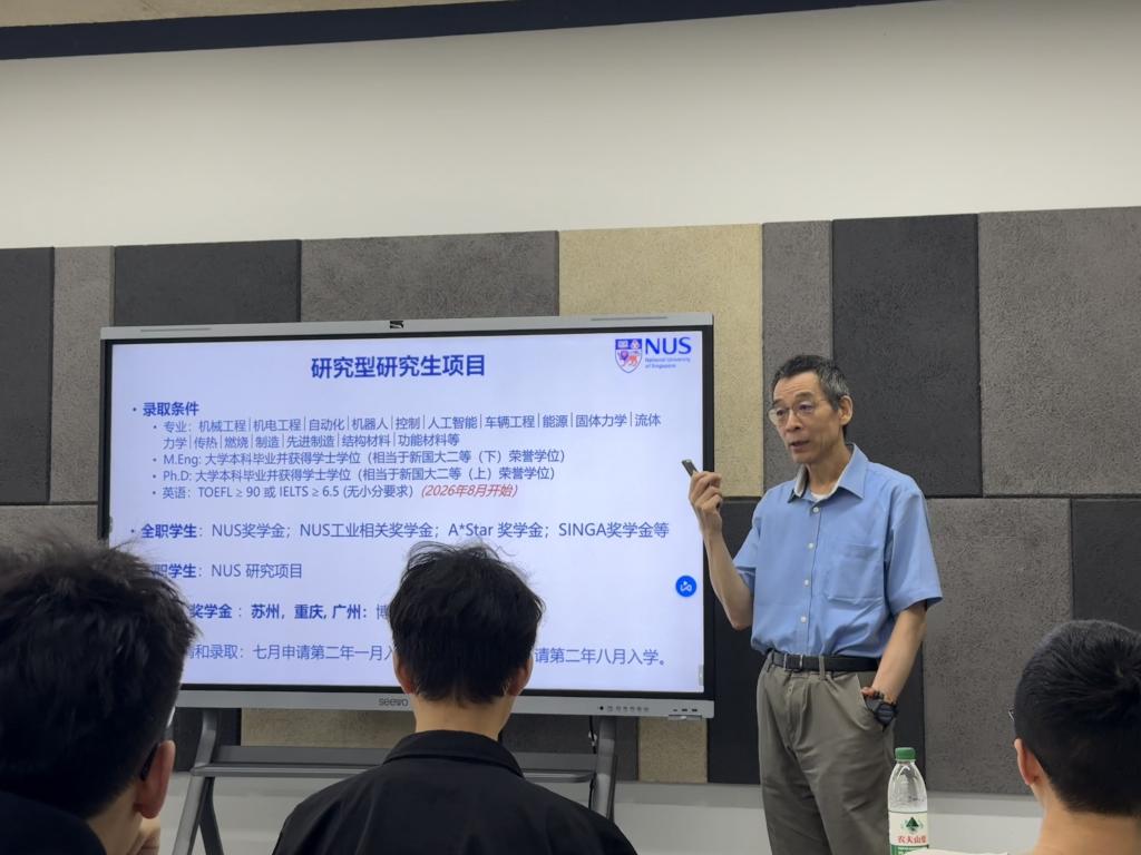 4月17日下午,新加坡国立大学机械工程硕士研究生项目宣讲活动在PA捕鱼 成功举办。此次宣讲由新加坡国立大学机械工程系副主任曾开阳教授主讲。活动伊始,通过展示校园剪影,曾教授带领同学们感受其独特的校园魅力,全方位呈现了学校现代化与生态化交融的环境特色。随后,曾教授介绍了新加坡国立大学机械工程研究生项目的录取要求、毕业条件、学费标准、申请时间节点、学制安排及课程设置等关键内容。在互动环节,同学们积极提问,就...