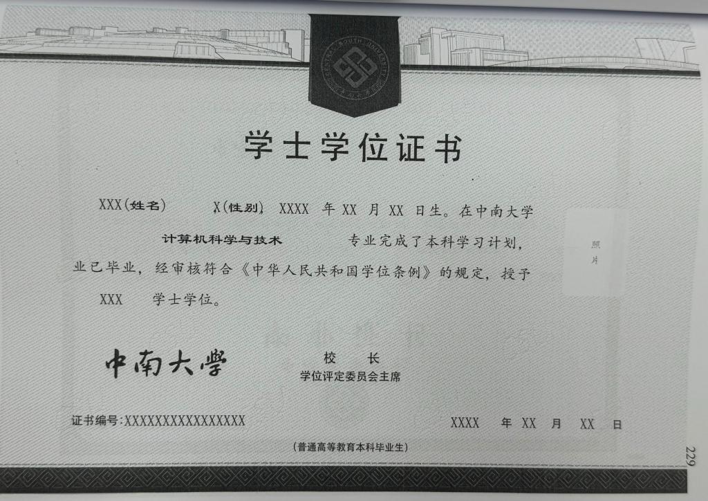 学生在中南大学规定的学习年限内,按要求完成培养方案所有教学环节,达到学校毕业要求的,颁发中南大学本科毕业证书;符合学校学位授予条件的,授予中南大学学士学位和邓迪大学学士学位。